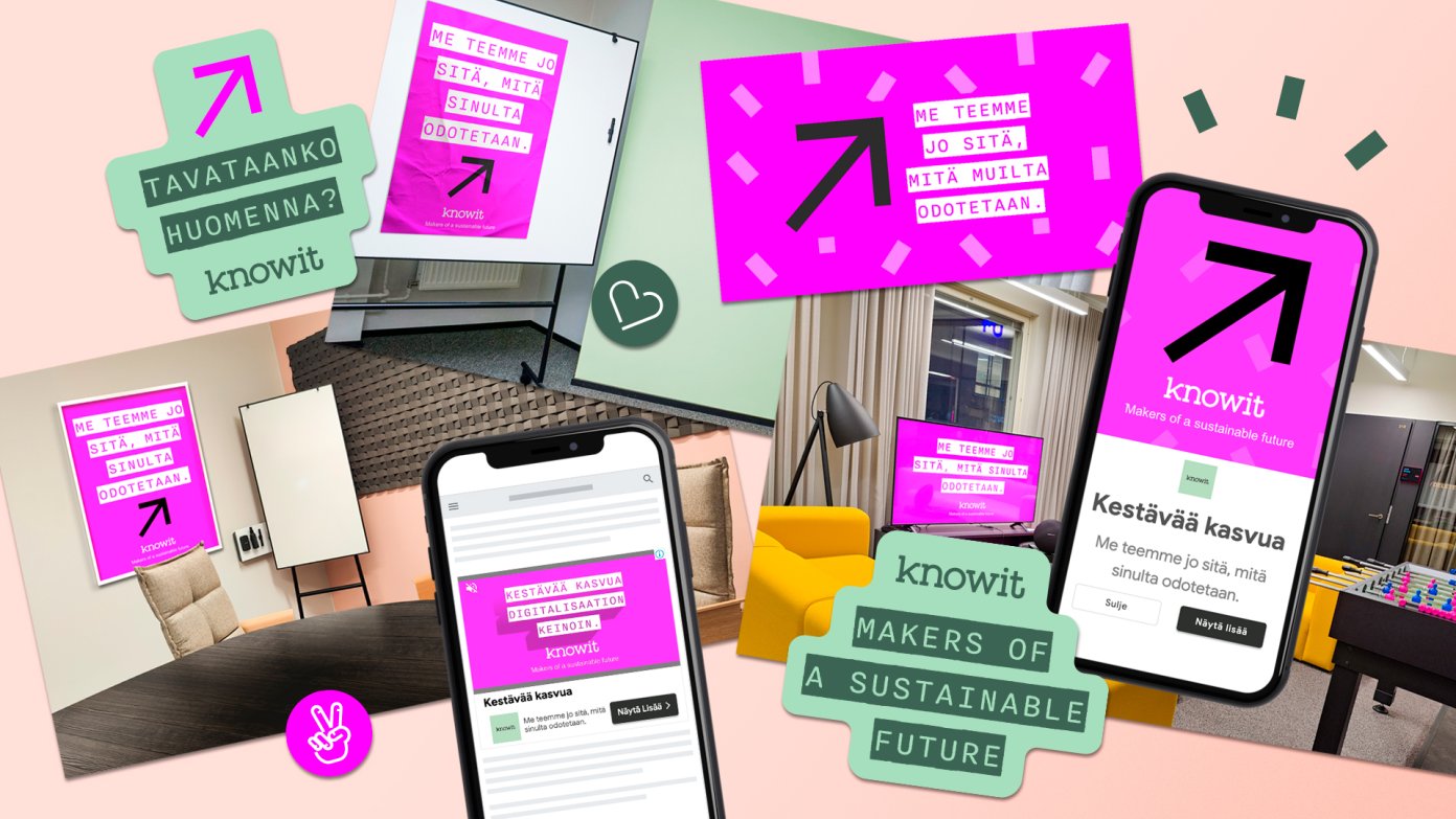 Grundlagen tiimin kanssa energiat kohtasivat ja kyky kuunnella yhdistettynä rohkeaan haastamiseen tuntui meille oikealta yhdistelmältä", todettiin Knowitilla, jossa kampanjasta vastasivat projektijohtaja Kaisa Oksanen, Knowit Experiencen Jani Järvinen ja tuore brändijohtaja Pekka Nurmi. Lähdimmekin porukalla kiteyttämään Knowitin roolia markkinassa ja nostamaan yrityksen profiilia niin asiakkaiden kuin nykyisten ja tulevien työntekijöiden silmissä. Oivaltava kulma löytyi asettumalla kohderyhmän asemaan ja tilanteeseen.