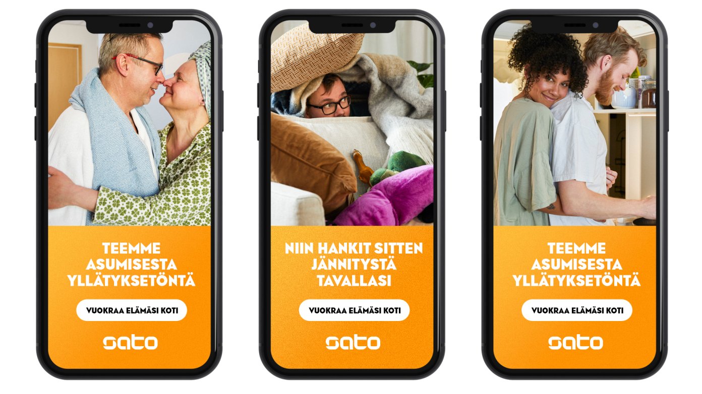 Asuminen on asia, jossa yllätykset harvoin ilahduttavat. Mainittakoon nyt vaikka putkirikko tai käsistä karannut lämmityslasku. Siksi päätimme vakaan ja luotettavan SATOn kanssa kääntää brändin heikkoutena pidetyn tylsyyden vahvuudeksi. Ja mennä toteutuksessa reippaasti päätyyn asti. Keväällä 2022 aloitettiin, eikä yllätyksiä näkynyt asumisessa vielä tänäkään keväänä. Ja päätimmekin yksissätuumin jatkaa mukavasti toiminutta konseptia.